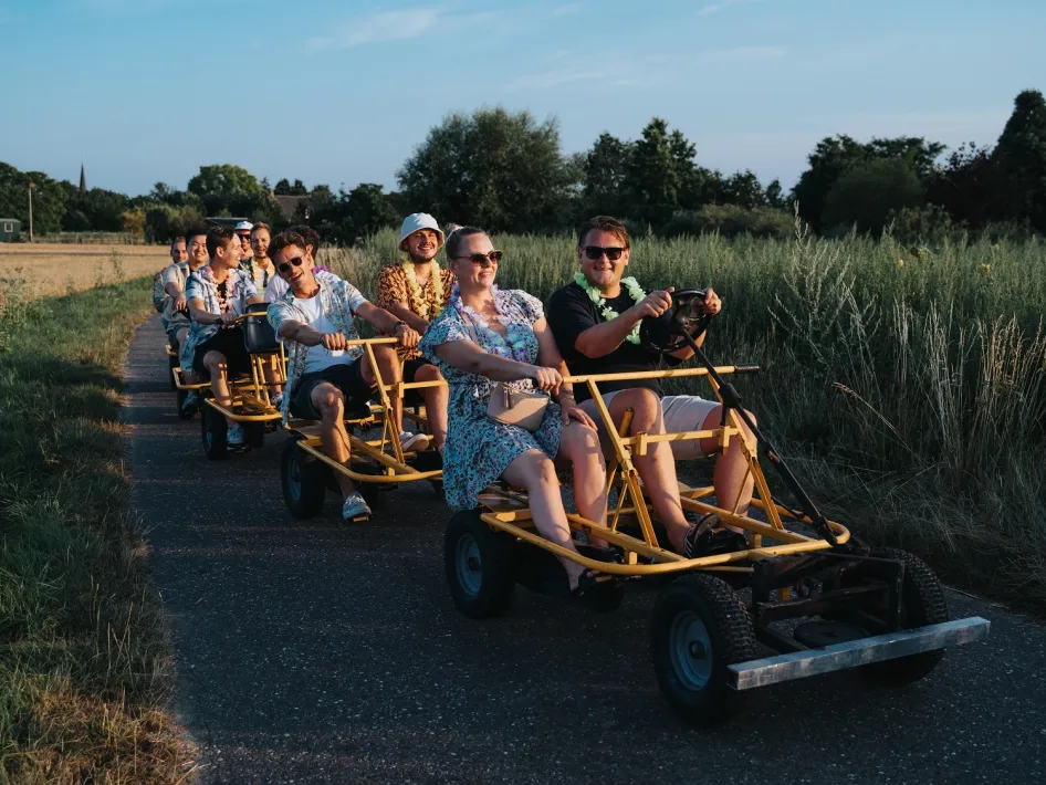 You have plenty of options. There are 100 city bikes available, tandems for groups of up to 250 people and bike trains for groups of up to 200 people. Ideal for a company outing, bachelor party or family day where experiencing something together is at the heart of it all.