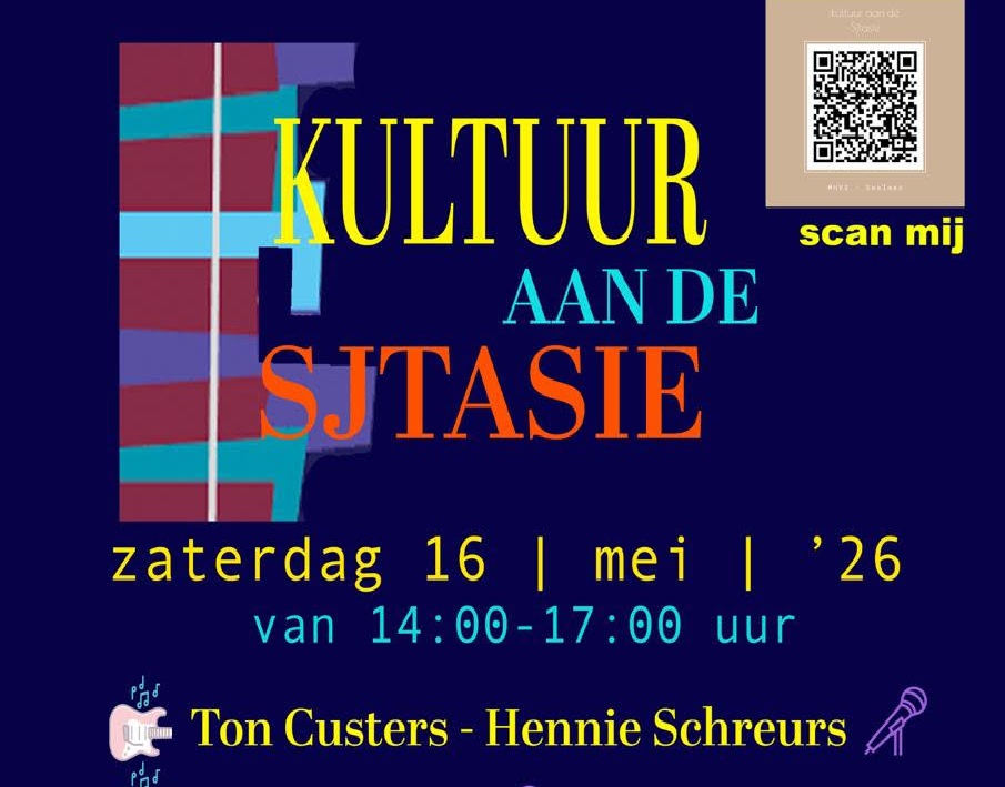 Op zaterdag 16 mei beleef je bij De Sjtasie in Swalmen een middag vol cultuur. Tijdens ‘ Kultuur aan de Sjtasie ’ wisselen muziek, poëzie en verhalen elkaar af in een ontspannen setting. Van 14.00 tot 17.00 uur ben je welkom om te luisteren, te kijken en je mee te laten nemen door verschillende makers uit de regio. De toegang is gratis.